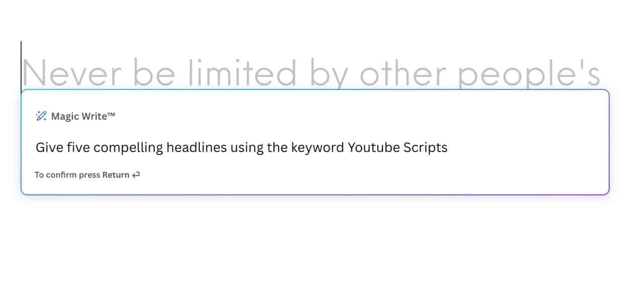 You can use Canva Magic Write in Docs only, and it can help you create many forms of content like eBooks, landing pages, blog posts, and more.