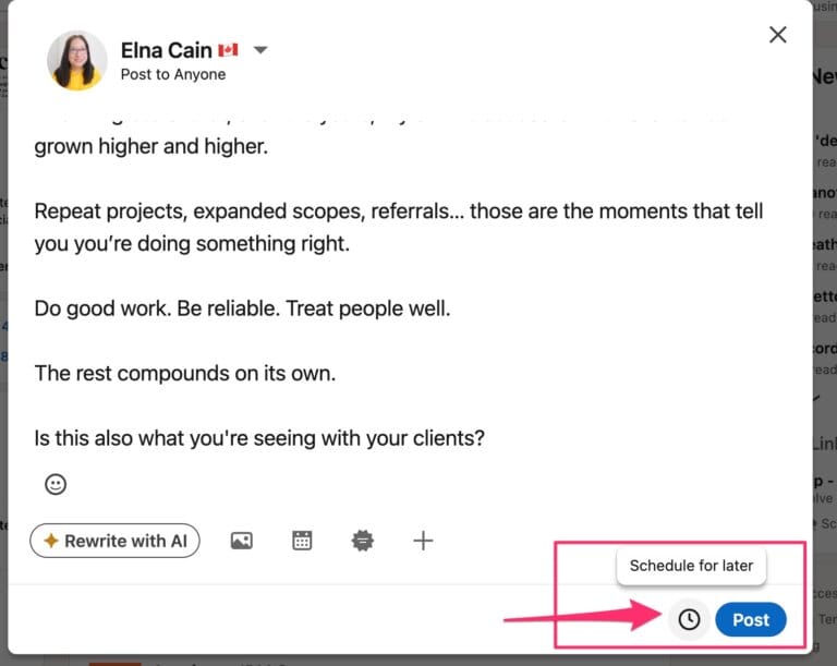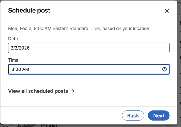 LinkedIn has a native scheduling tool, and it’s easy to use.