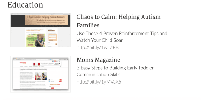 For example, one guest post was for an autism blog and another one was for a mom’s magazine site.