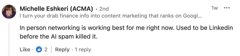 Just today a potential lead DM’d me on LinkedIn, saying they looked at my content on my LinkedIn page.