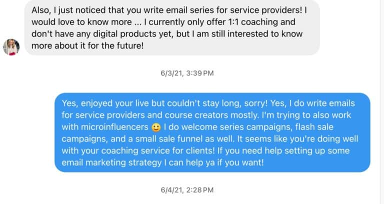 Facebook helped me land my gig with Walmart, while Instagram helped me land email newsletter clients.