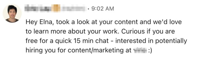 So, right out the gate I was asking for a referral because I wanted more writing jobs!