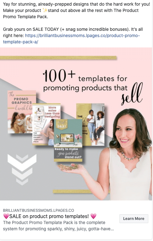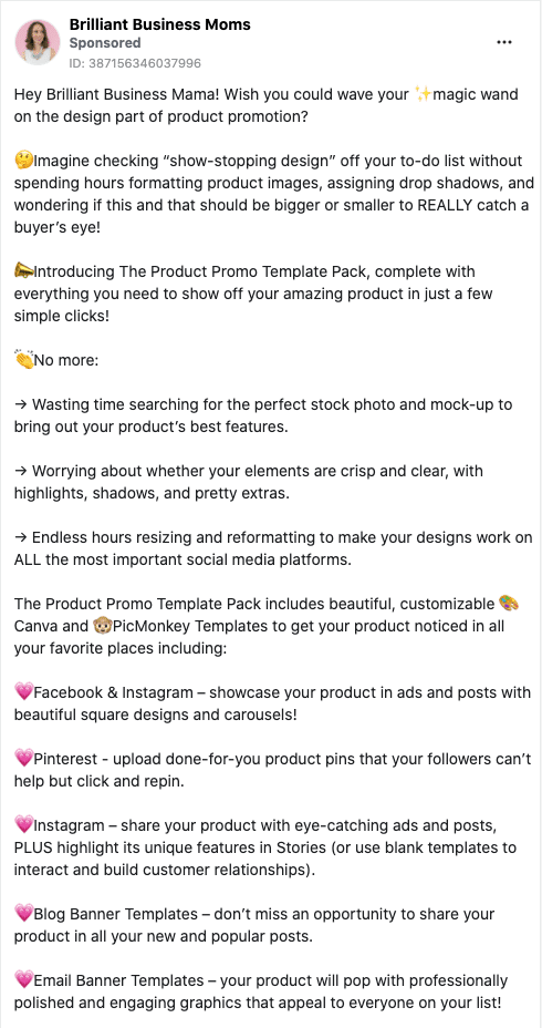 Here is an example of a well copywritten Facebook Ad.